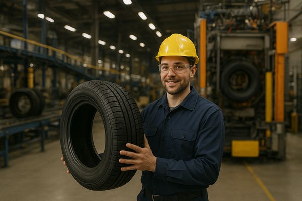 Робітник на виробництві шин.